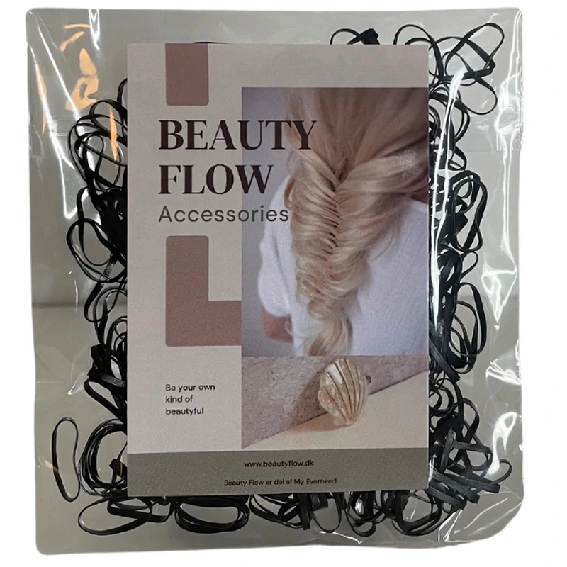 Beauty Flow Silicone Elastics 8 gr. – Black er en pakke med ca. 400 små sorte elastikker, der let kan skjules i en smuk opsætning. I og med at de er lavet af silikone, sidder de utrolig godt fast i håret, så de ikke glider ud, samtidig med at de ikke skader håret.
