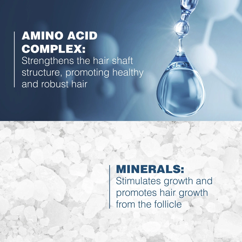 Denne shampoo aktiverer hårvækst fra første måned*, samt giver stærkere og tættere hår, for lettere styling fra første uge**. Pellicer (aminosyrer) beskytter og styrker hårfibrene. Mangan forbedrer mikrocirkulationen og styrker hårets vedhæftningsevne, og andenosin fremmer hårvæksten.