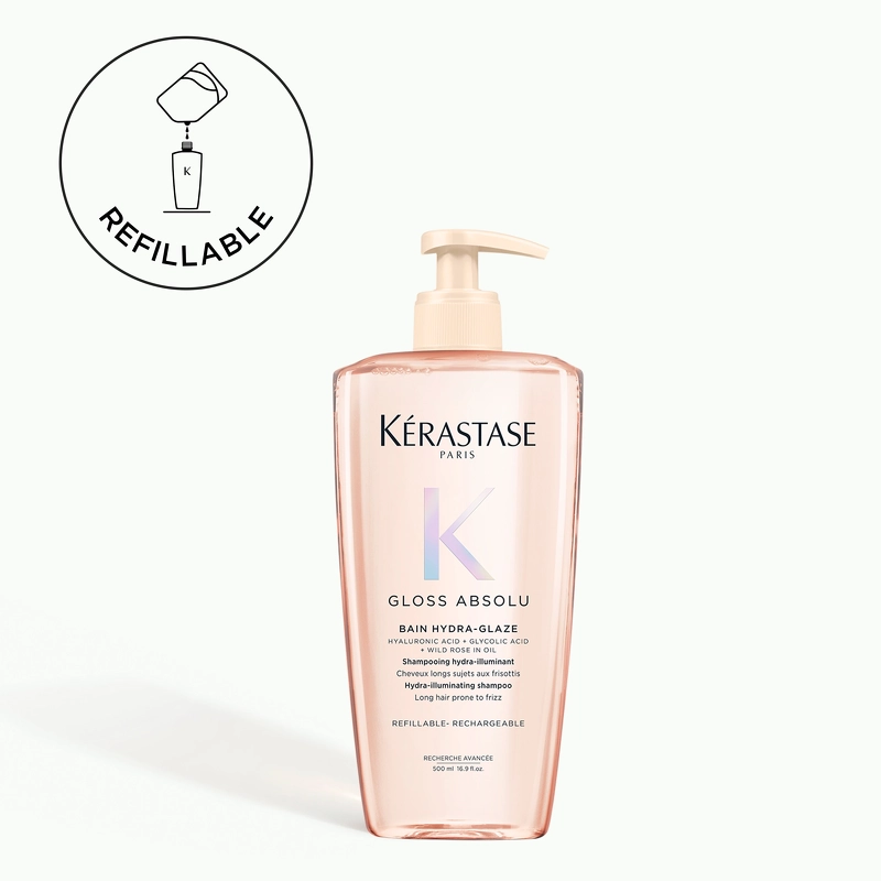 Kérastase Gloss Absolu Bain Hydra-Glaze Shampoo er en hydra-illuminerende shampoo til langt hår med tendens til krus. Den indeholder hyaluronsyre, glykolsyre og vildroseolie for at give fortryllende, bouncy og glansfuldt hår