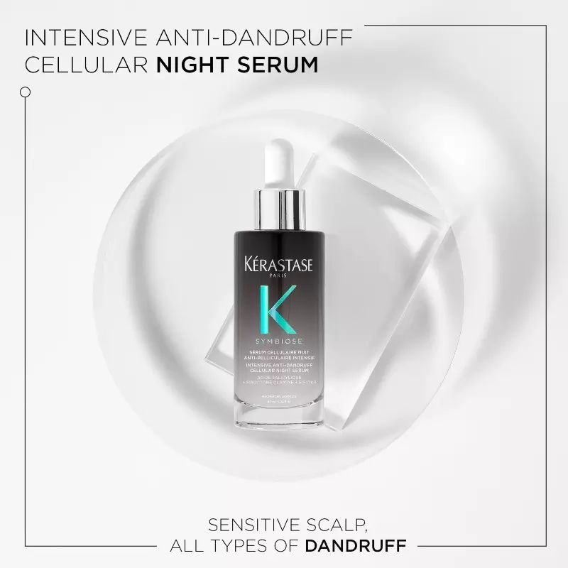 Kérastase Symbiose Anti-Pelliculaire Intensif Night Serum er et intensivt natserum mod skæl til senstiv hovedbund og alle typer af skæl.