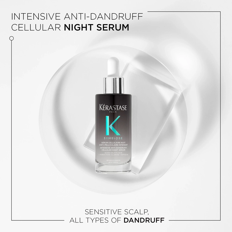 Kérastase Symbiose Anti-Pelliculaire Intensif Night Serum er en avanceret natbehandling, der dybdeplejer og revitaliserer din hovedbund, mens du sover. Den lette og ikke-fedtende formel trænger dybt ind og bekæmper skæl ved kilden, så du vågner op med en beroliget og fornyet hovedbund.