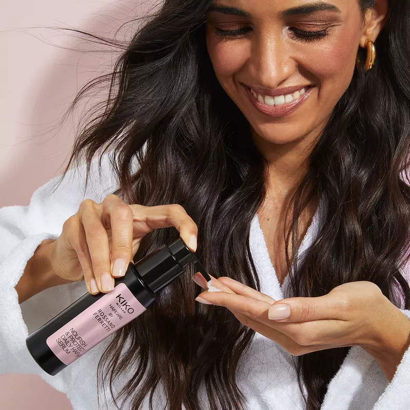 KIKO Milano Nourish & Protect Daily Hair Serum er et nærende hårserum, som er udviklet i samarbejde med den verdenskendte hairstylist, Rossano Ferretti. Det er ideelt til at genopbygge håret og efterlade det silkeblødt, næret og helt skinnende.