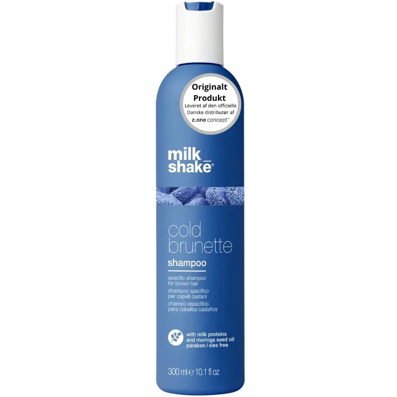 Milk_shake Cold Brunette Shampoo er en shampoo, som er udviklet til dig med et mørkt hår, som ønsker at det skal få en mere kold farve. Denne shampoo er nemlig beriget med blå pigmenter, som neutraliserer ønskede varme nuancer i håret.