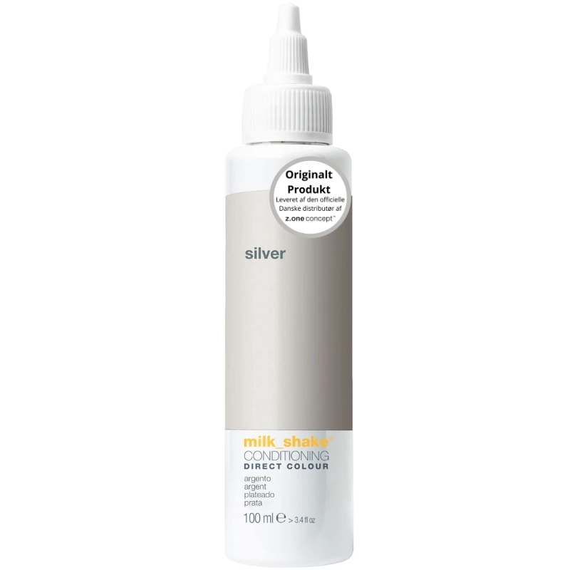 Med Milk_shake Conditioning Direct Colour – Silver får du en moderne kold lysegrå hårfarve. Direct Colour farvesystemet, er ikke uden grund, blevet mange frisører og forbrugers favorit. Denne plejende farve, er rig på pigmenter og giver dig mulighed for at opfriske din farve, indfarve den i en koldere eller varmere nuance, eller være kreativ og lege med de mange pang farver. Farvebehandlingen holder i op til 8-10 hårvaske, alt efter hårets tilstand, tykkelse og grundlag.