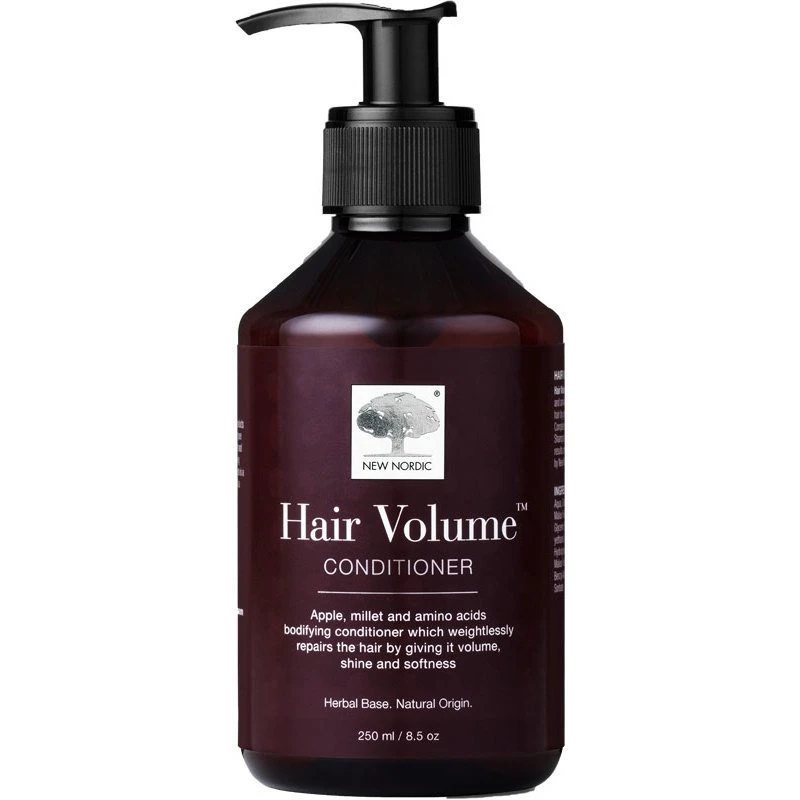 New Nordic Hair Volume Conditioner er en volumengivende conditioner, som giver fylde og glans til alle hårtyper. Denne skønne balsam er beriget med æble, hirse og aminosyrer som vægtløst reparerer håret, gør det blødt og giver volume og en smuk glans.
