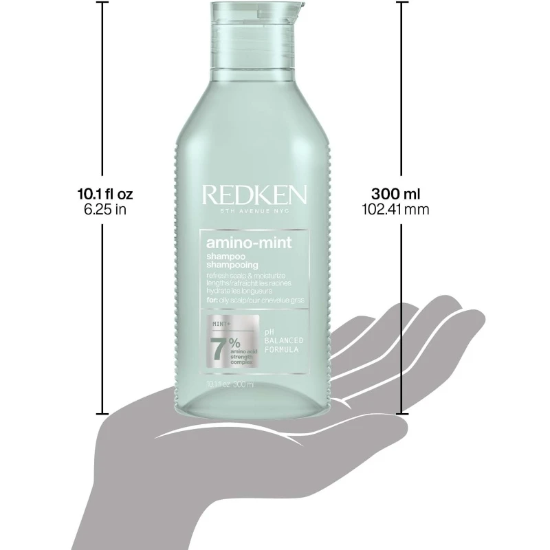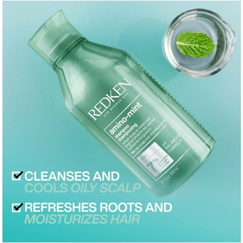 Redken Amino Mint Shampoo er den helt rette shampoo til dig, der døjer med en fedtet hovedbund. Den friske mynteformel er nemlig beriget med aminosyrestyrkekompleks, som hjælper med at rense fedtet hovedbund, samtidig med at den fugter hårets længder.