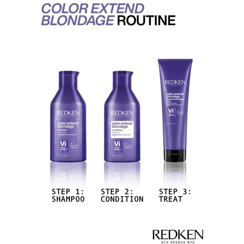 Redken Color Extend Blondage Shampoo er en super effektiv farvebevarende shampoo, som er specielt velegnet til blondt og lysnet hår. Denne shampoo indeholder nemlig utra-violette pigmenter, som korrigerer og neutraliserer uønskede gyldne toner i håret, og derved efterlades håret med et klarere og mere kold farve.