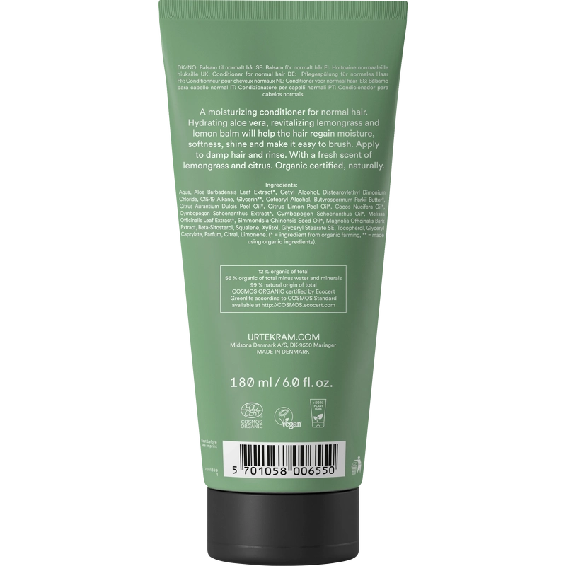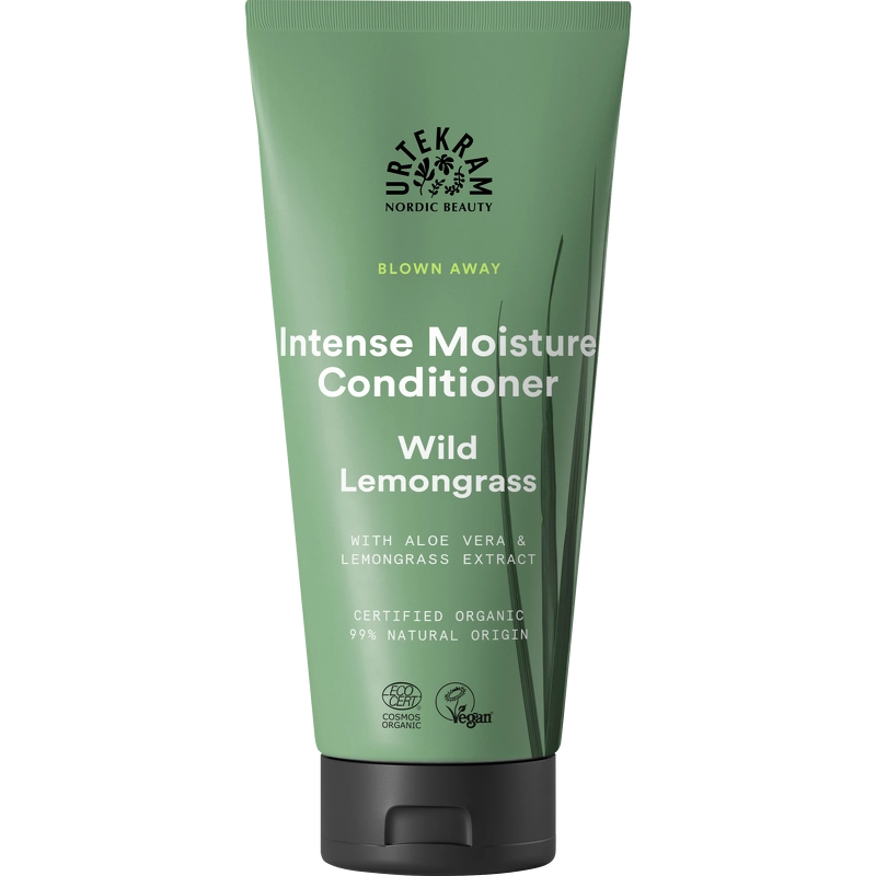 Urtekram Blown Away Intense Moisture Conditioner Wild Lemongrass er lavet på ingredienser med 99 % naturlig oprindelse, derudover er den vegansk, ECOCERT mærket og fyldt i plantebaseret emballage lavet af sukkerrør.