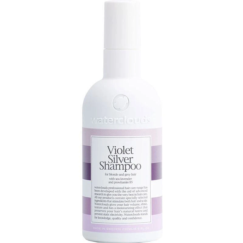 Waterclouds Violet Silver Shampoo er en fantastisk silvershampoo, som er rig på violette pigmenter, der neutraliserer de uønskede gule toner i et blondt eller gråt hår.